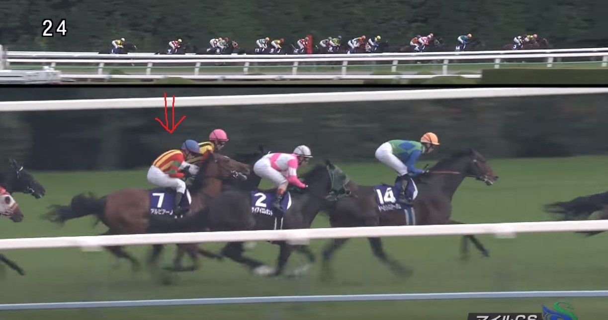 直線。モーリスは外に出すだけ。フィエロもスムーズならまっすぐ追い出せました。サトノアラジンのルメール騎手は外に目をやっており、鼻から内に突っ込む気はなかったように感じました
