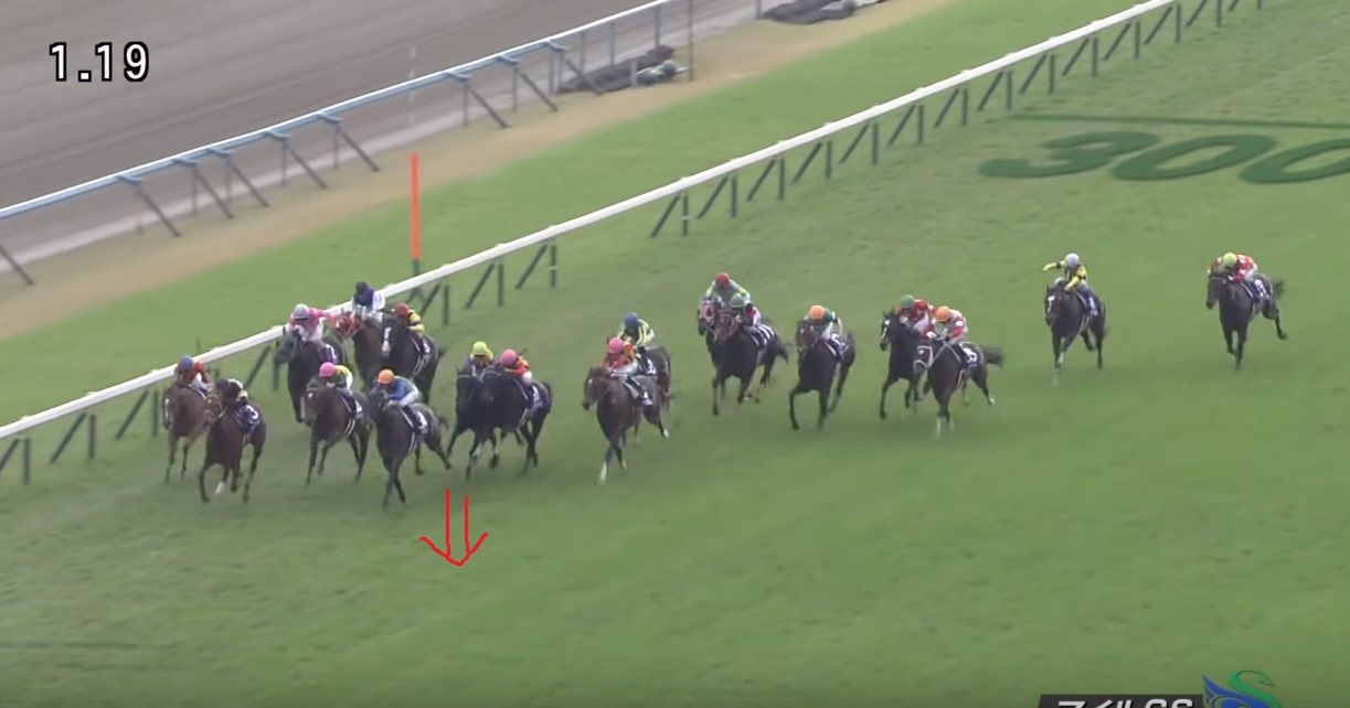 テンのダッシュがしっかりついた時点で一気に浜中騎手が内に切れ込んできます