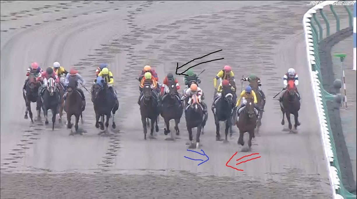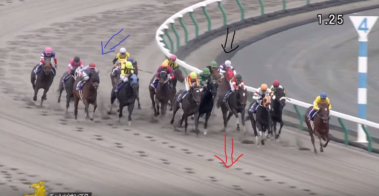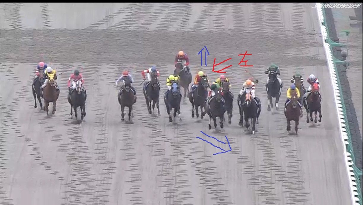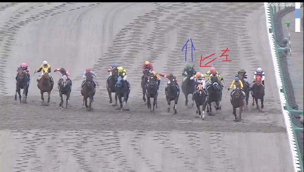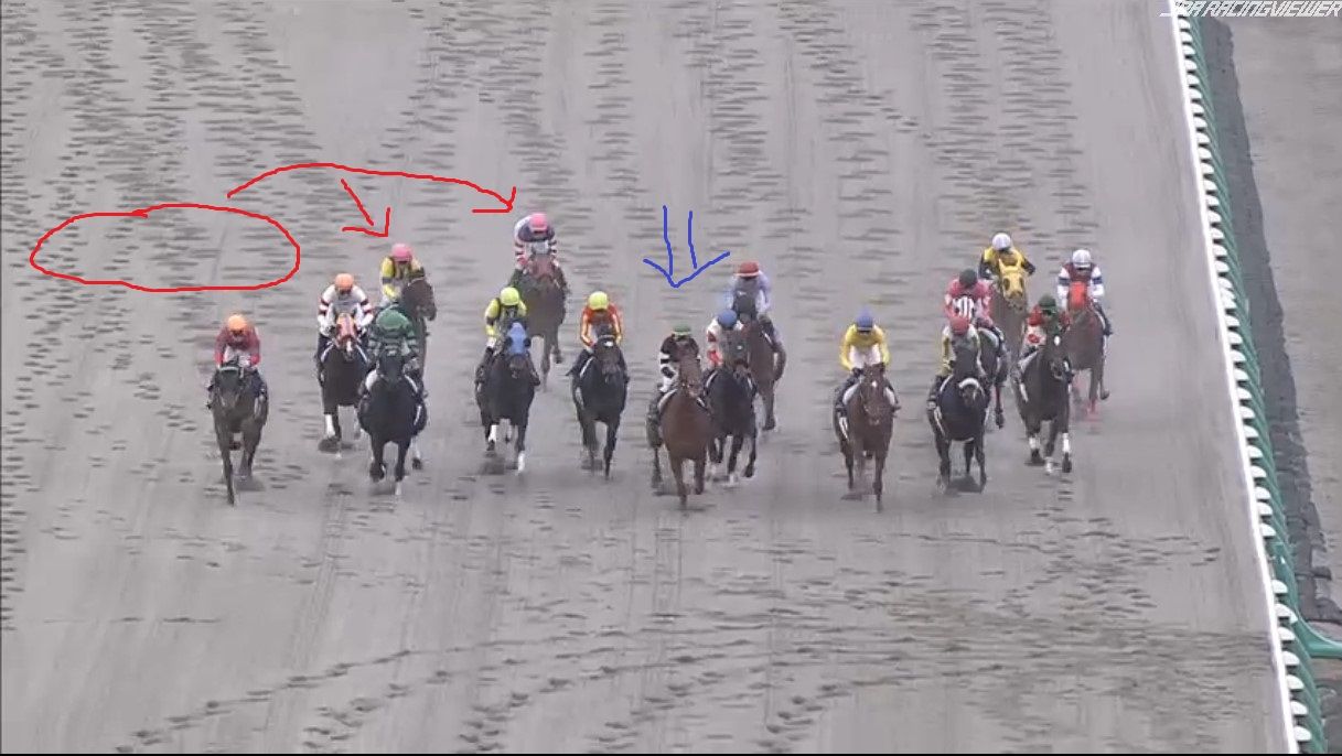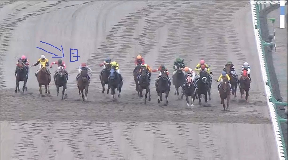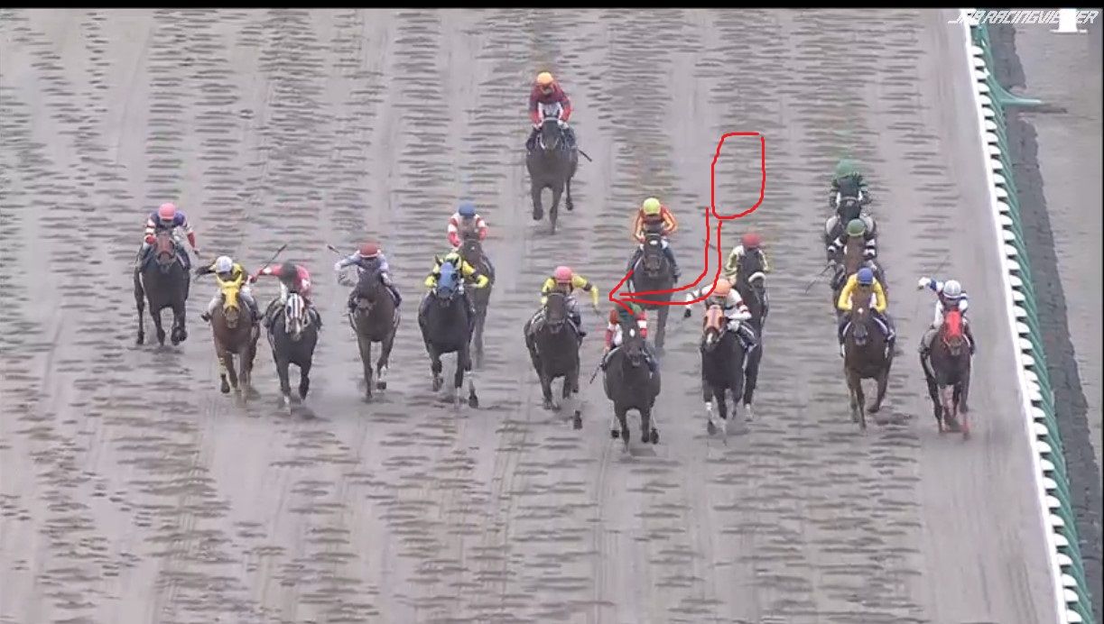 大外にいた2頭が労せずして、内へ。JCのナイトフラワーやショウナンパンドラと同じですね
