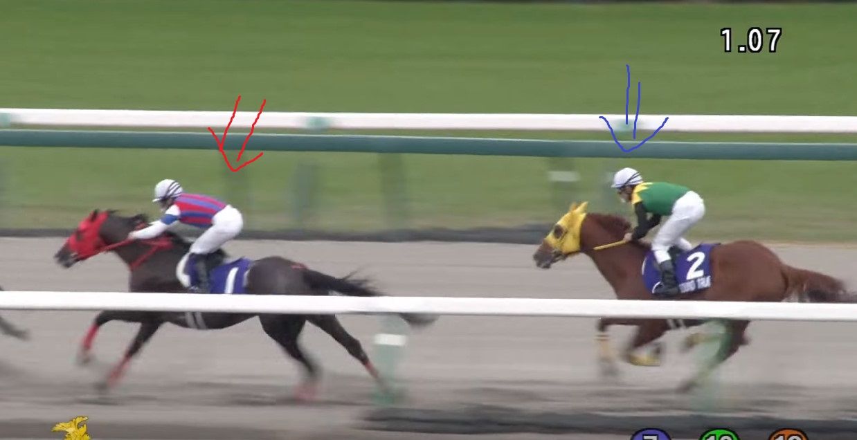 ここを見て欲しいのですが、かなり大きなアクションで手綱をしごいてます