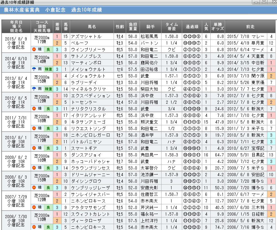 重賞を予想するうえで、まず一番最初にすることは、過去10年を振り返ること