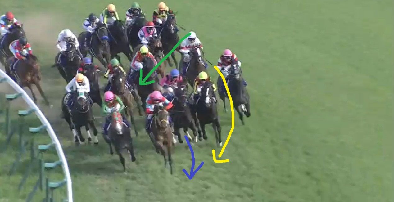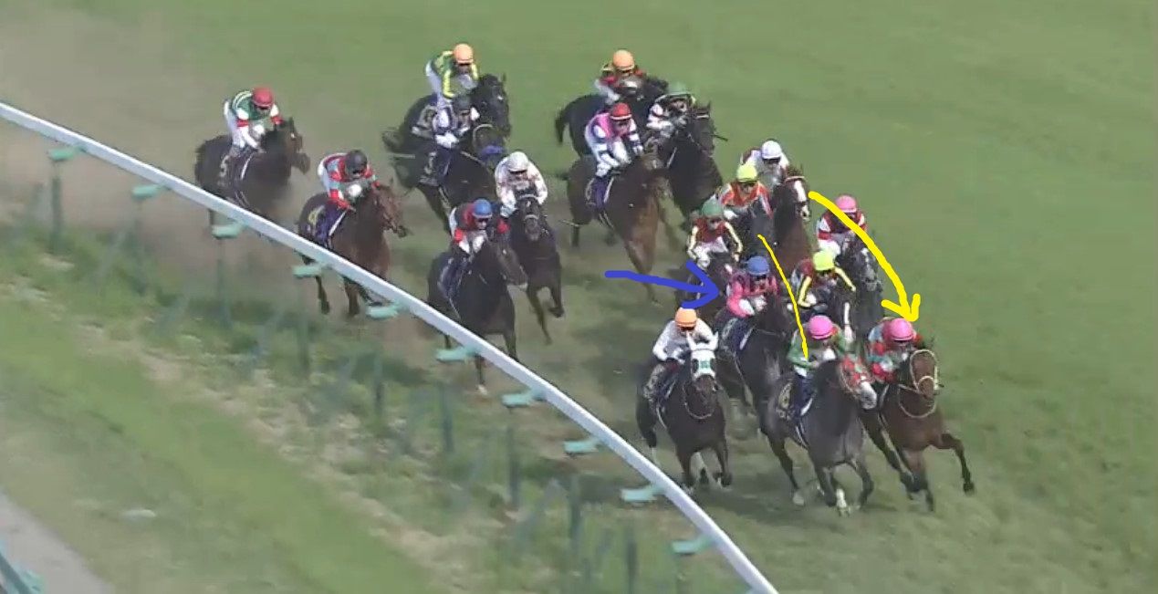 外に出したい岩田騎手に対し、外へは出させないぞと武豊騎手。きっちりタイトに回って、しっかり壁を作っていましたね。