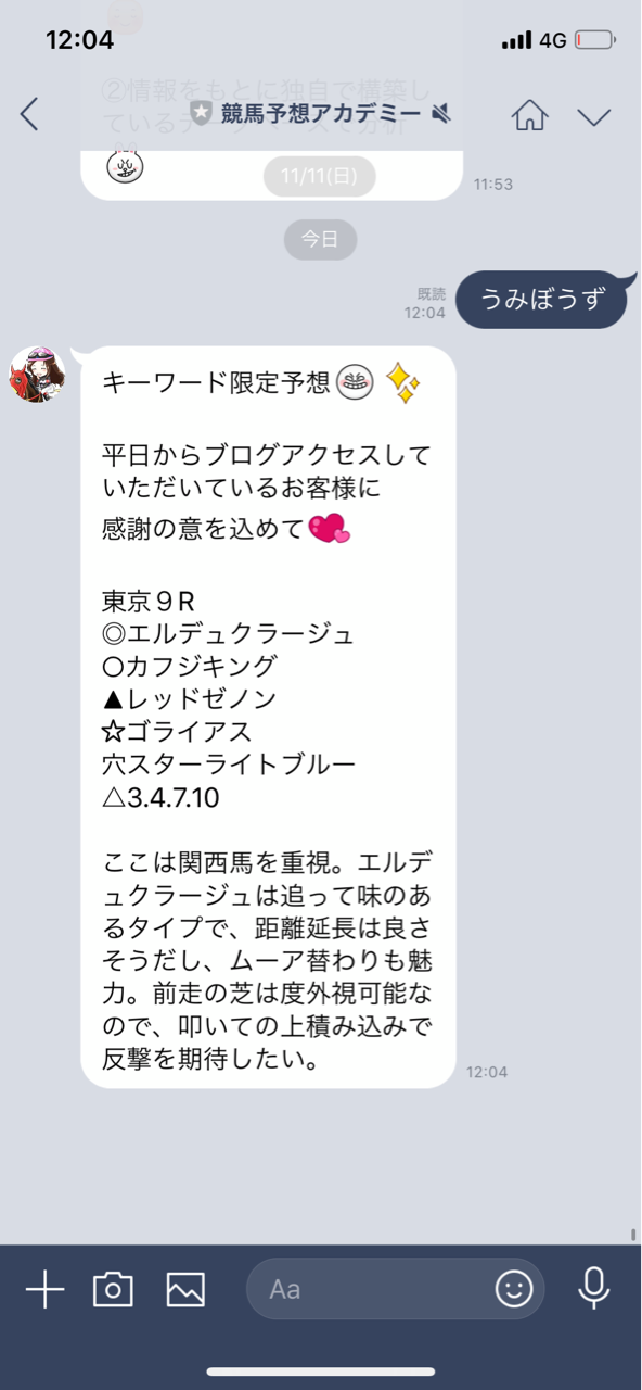 にしました。キーワード○○○○○を打って予想をGETしてね!