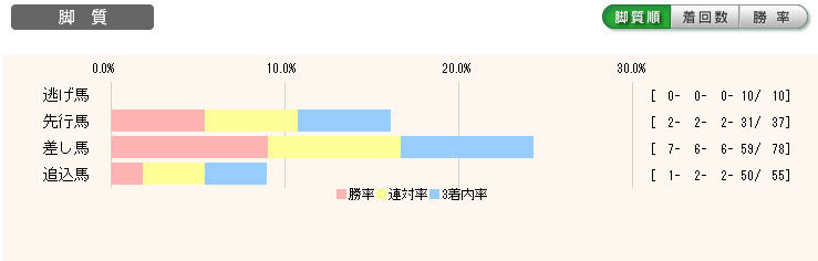 前走は、2着馬に一瞬で並びかけ、そこから「抜けさないように」減速。最後だけスっと出すという、手加減競馬で完勝。